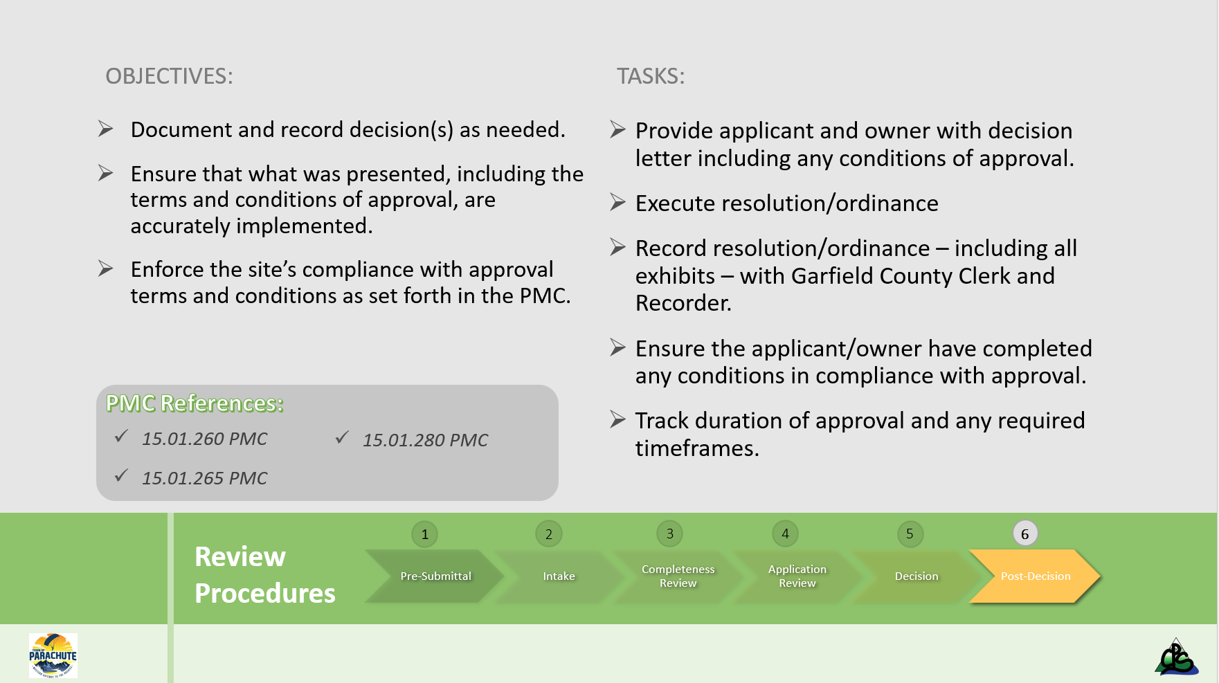 References to Parachute Municipal Code and Land Use Regulations