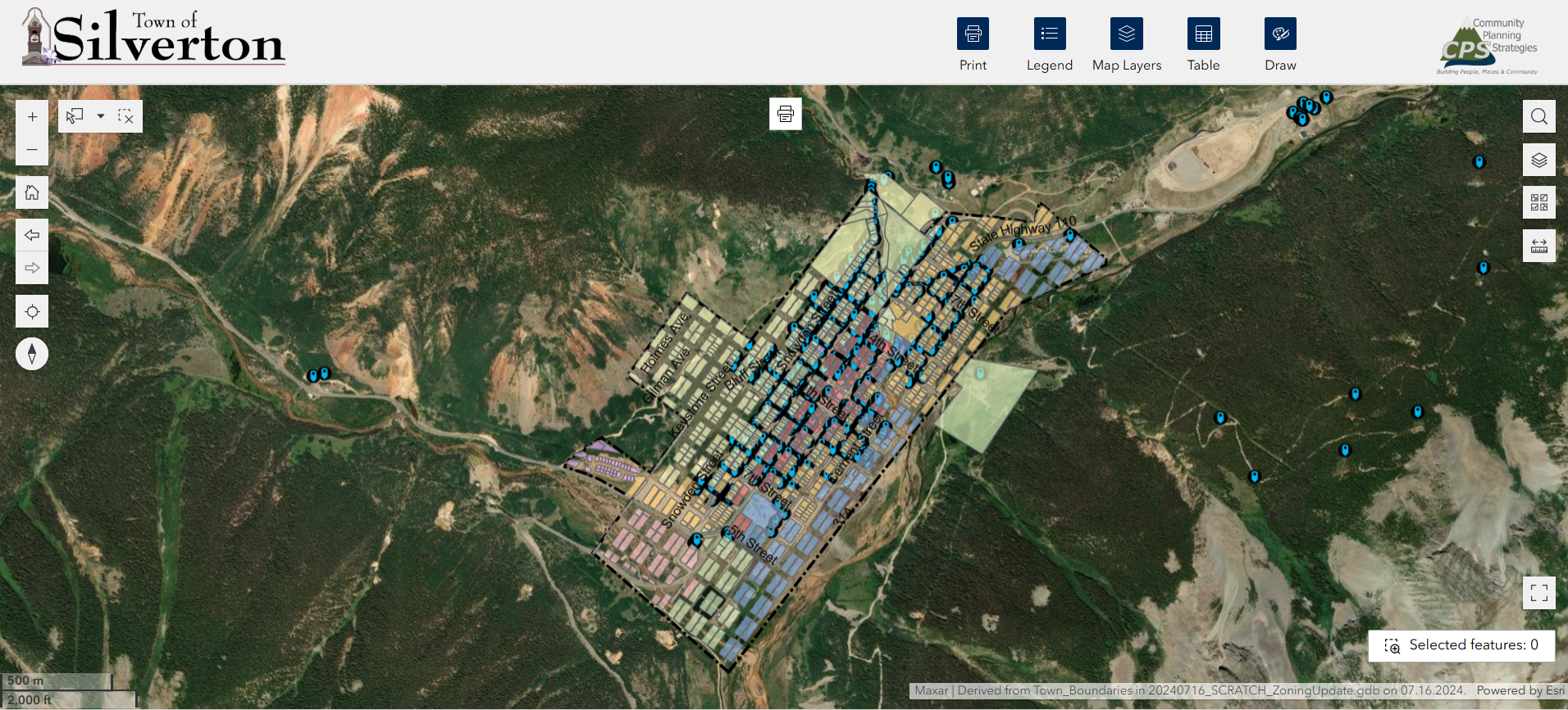 Community Planning Strategies is collaborating with the Town of Silverton to provide geospatial mapping support for planning-related needs and online map access for town staff. This includes regular updates and maintenance to ensure accurate data and continued access and uptime.